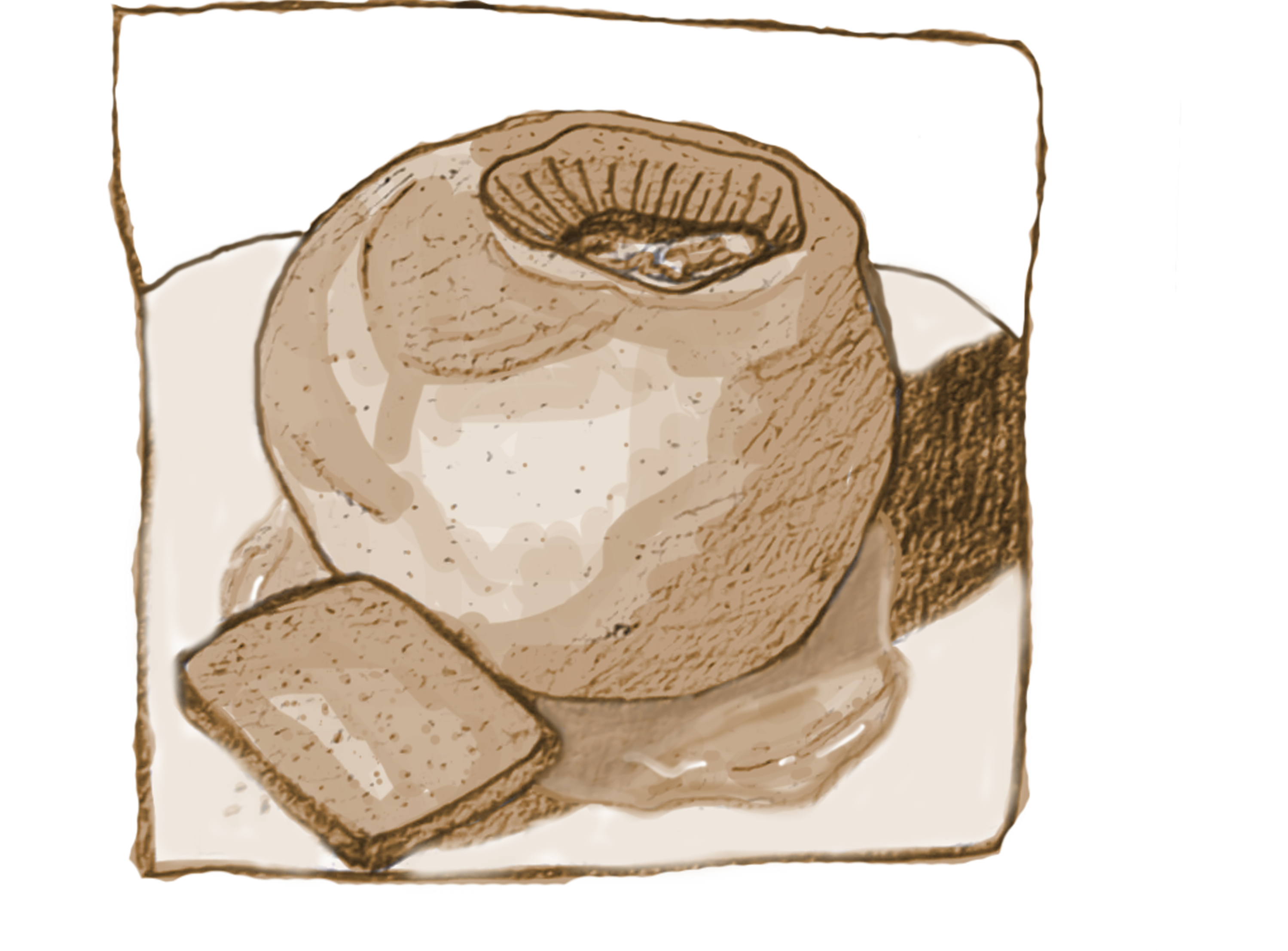 Au centre de chaque pomme mettez la confiture ( deux bonnes cuillères à café par pommes)