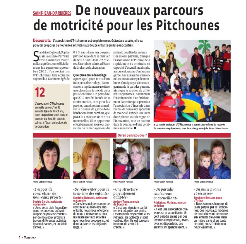 Nos Réseaux O'Pitchounes Retrouvez toutes nos actualités sur Facebook et Instagram. Facebook Instagram Découvrez aussi les articles de presse parus sur la MAM ! N’hésitez plus, Rejoignez-nous