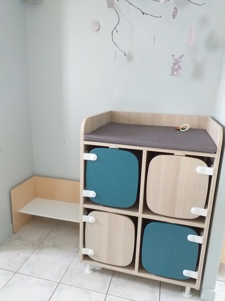 La dernière étape avant d’aller à la sieste. Là encore l’aménagement du mobilier est pensé pour favoriser l’autonomie des enfants.